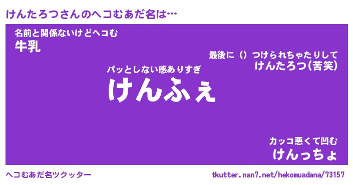 | ファンタジー風あだ名 | 『ケンフェル』『エターナルケンタロツー』 |