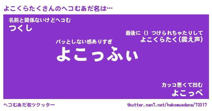 | 胡散臭い通販商品みたいなあだ名 | 『必ず成功する霊験あらたかなお札…その名も「よこくらたく」』 |