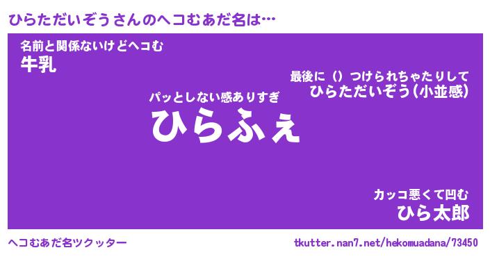 | 意味不明あだ名 | 『ペロリンひらただいぞう』 |