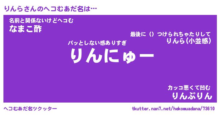 | 意味不明あだ名 | 『ペロリンりんら』『りんらフォーエバー』 |