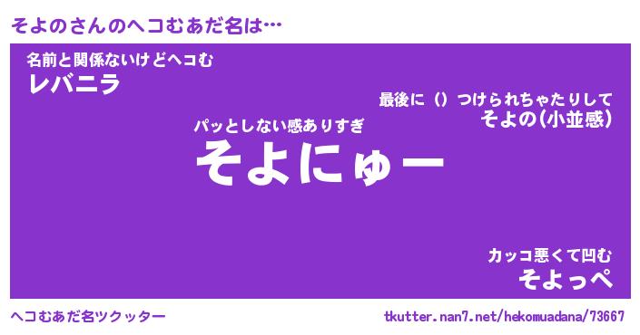 | ファンタジー風あだ名 | 『ソヨフェル』『エターナルソヨノー』 |