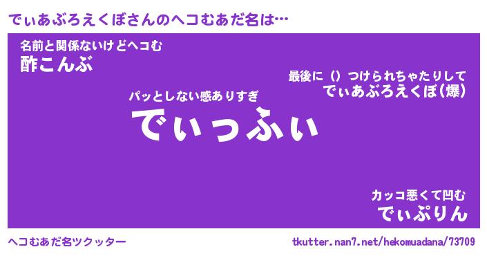 | 男性向けラノベタイトル風あだ名 | 『でぃあぶろえくぼの憂鬱』 |