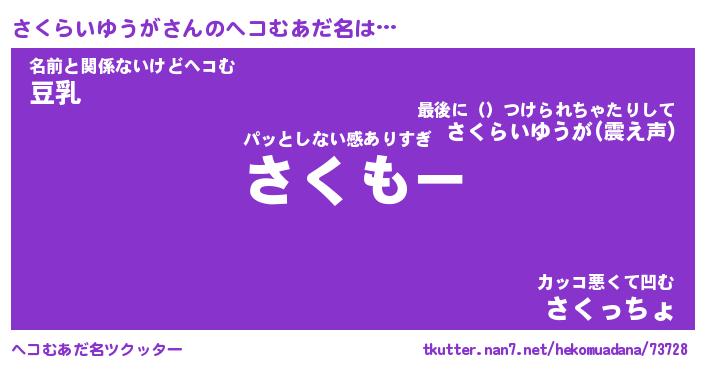| 恥ずかしいあだ名 | 『プリティーさくらいゆうが』『さくちん』 |