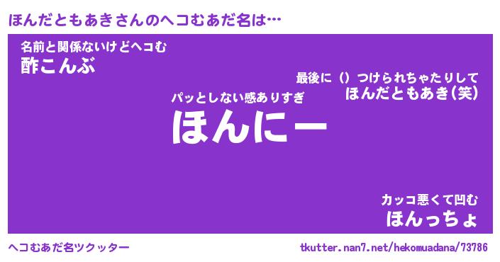 | 恥ずかしいあだ名 | 『プリティーほんだともあき』『ほんちん』 |