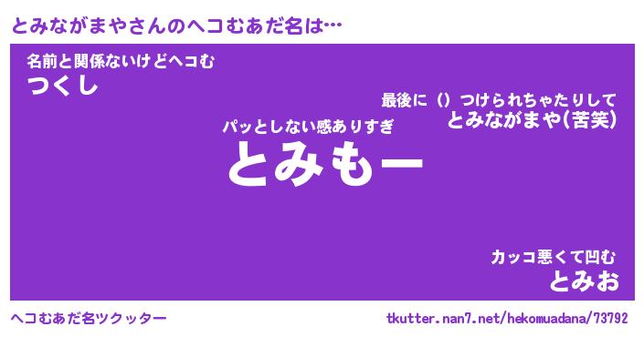 | 男性向けラノベタイトル風あだ名 | 『とみながまやの憂鬱』 |