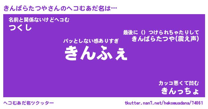 | 意味不明あだ名 | 『ペロリンきんばらたつや』 |