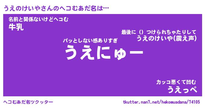 | 意味不明あだ名 | 『ペロリンうえのけいや』 |