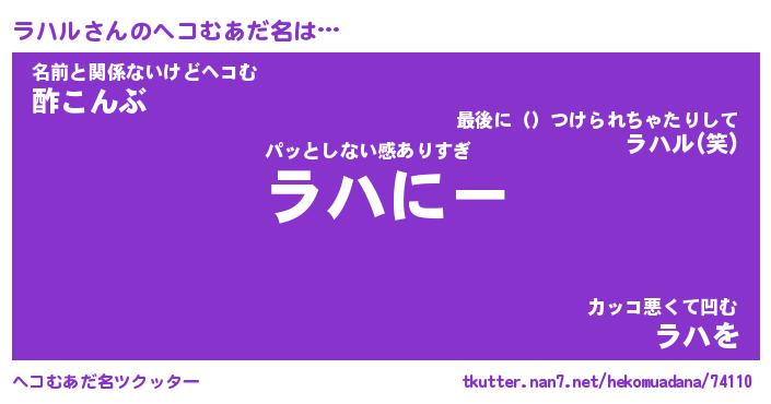 | 意味不明あだ名 | 『ペロリンラハル』『ラハルフォーエバー』 |