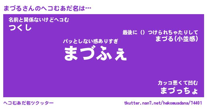 | 意味不明あだ名 | 『ペロリンまづる』『まづるフォーエバー』 |