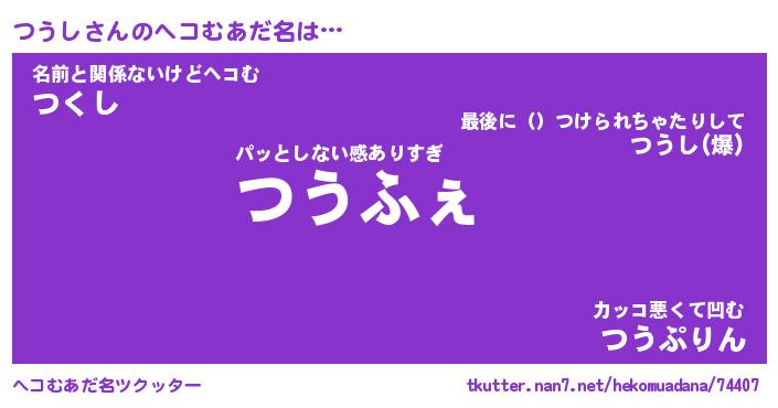 | 男性向けラノベタイトル風あだ名 | 『つうしの憂鬱』 |