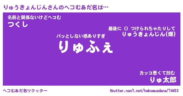 | 男性向けラノベタイトル風あだ名 | 『りゅうきょんじんの憂鬱』 |