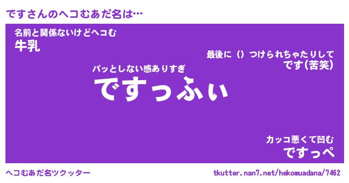 | 男性向けラノベタイトル風あだ名 | 『ですの憂鬱』『ノーゲーム・ノーデス』 |