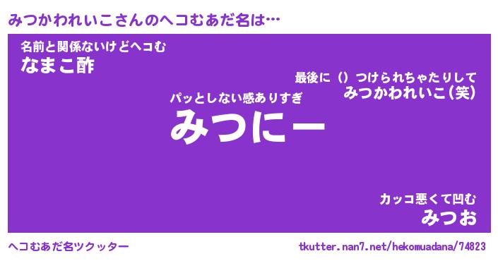 | 男性向けラノベタイトル風あだ名 | 『みつかわれいこの憂鬱』 |