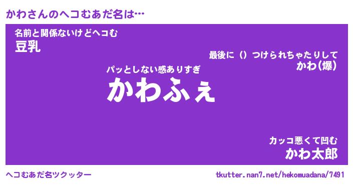 | 意味不明あだ名 | 『ペロリンかわ』『かわフォーエバー』 |