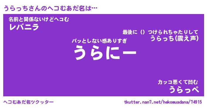 | 欧米人風あだ名 | 『マイケルうらっち』『ウサインうらっち』 |