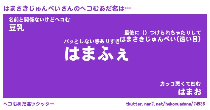 | 男性向けラノベタイトル風あだ名 | 『はまさきじゅんぺいの憂鬱』 |