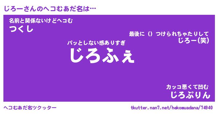| ヒーロー風カッコイイあだ名 | 『スーパージロー』『ウルトラじろーマン』 |