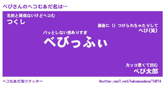 | 男性向けラノベタイトル風あだ名 | 『べびの憂鬱』 |