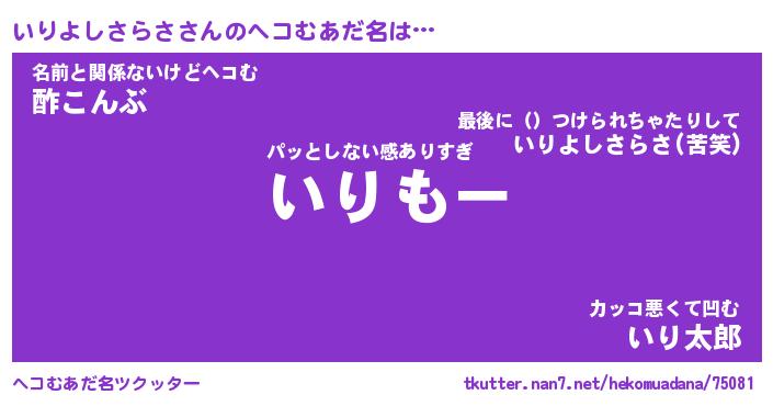 | ヒーロー風カッコイイあだ名 | 『スーパーイリヨシサラサ』 |