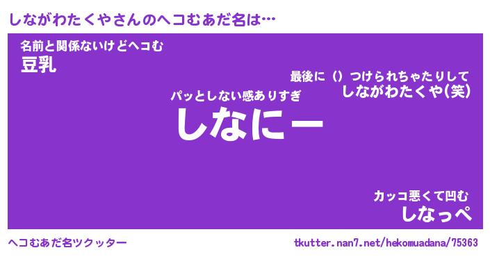 | 胡散臭い通販商品みたいなあだ名 | 『モテモテ間違いなしブレスレット…その名も「しながわたくや」』 |
