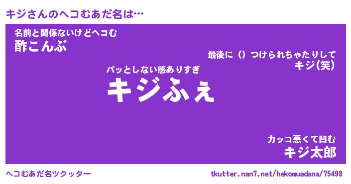 | 意味不明あだ名 | 『ペロリンキジ』『キジフォーエバー』 |