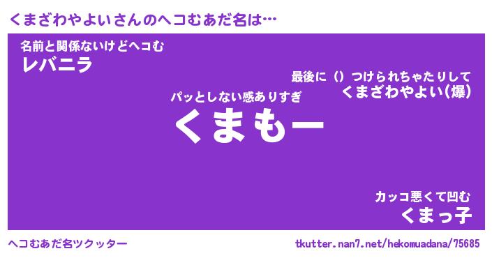 | 2回繰り返すあだ名 | 『くまくま』『くくまま』『うずうず』 |