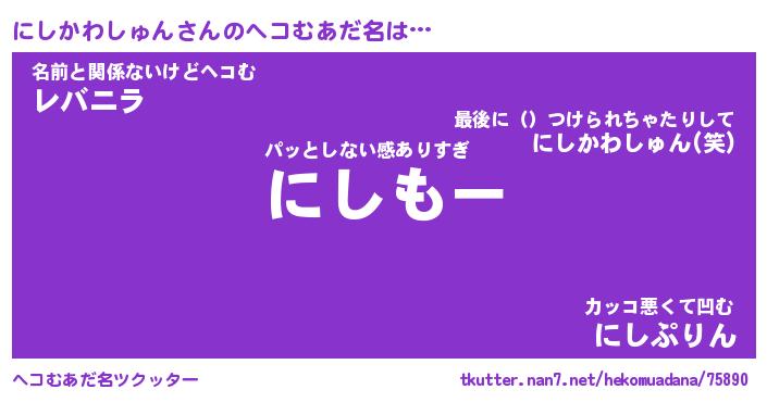 | ポケモン風あだ名 | 『ニシチュウ』『ニシカダネ』 |
