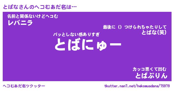 | ヒーロー風カッコイイあだ名 | 『スーパートバナ』『ウルトラとばなマン』 |