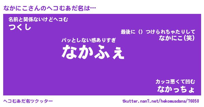 | 欧米人風あだ名 | 『マイケルなかにこ』『ウサインなかにこ』 |