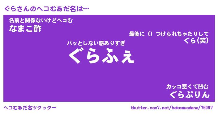 | 意味不明あだ名 | 『ペロリンぐら』『ぐらフォーエバー』 |
