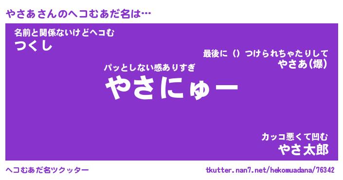 | 自動車の名前っぽいあだ名 | 『ヤサティマ』『ヤクア』『デミヤ』 |