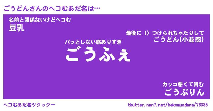 | 意味不明あだ名 | 『ペロリンごうどん』『永久保存ごうどん』 |