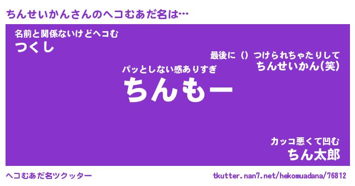 | ヒーロー風カッコイイあだ名 | 『スーパーチンセイカン』『銀牙騎士チン』 |