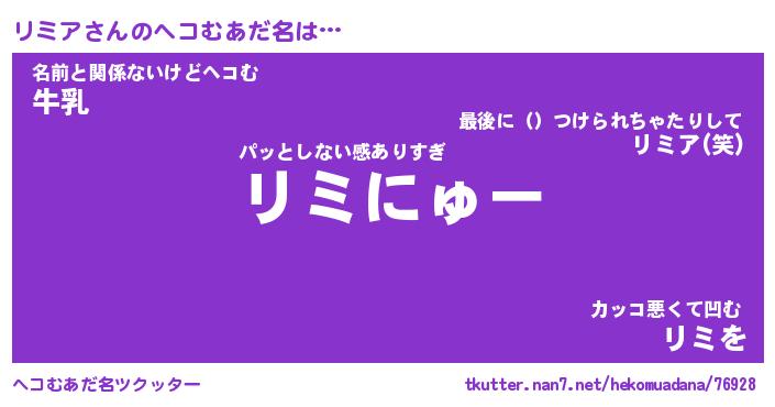 | ヒーロー風カッコイイあだ名 | 『スーパーリミア』『ウルトラリミアマン』 |