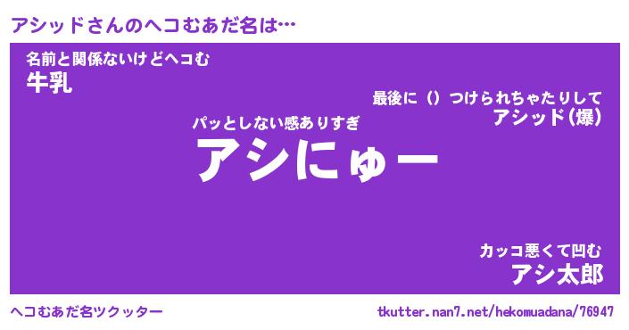 | 男性向けラノベタイトル風あだ名 | 『アシッドの憂鬱』 |