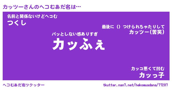 | ファンタジー風あだ名 | 『カッフェル』『エターナルカッツーー』 |