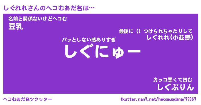 | 意味不明あだ名 | 『ペロリンしぐれれ』『永久保存しぐれれ』 |