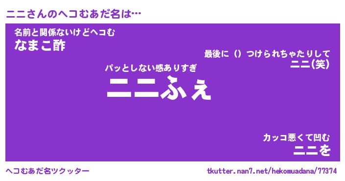 | ファンタジー風あだ名 | 『ニニフェル』『エターナルニニー』 |