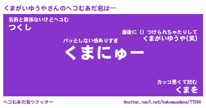 | ヒーロー風カッコイイあだ名 | 『スーパークマガイユウヤ』 |