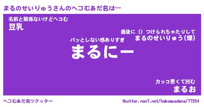| 男性向けラノベタイトル風あだ名 | 『まるのせいりゅうの憂鬱』 |
