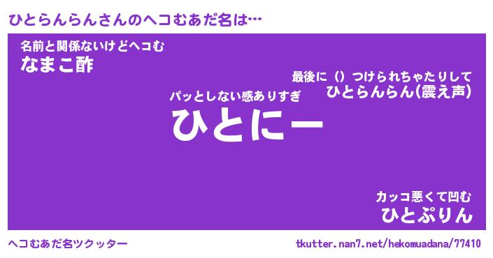 | 意味不明あだ名 | 『ペロリンひとらんらん』 |