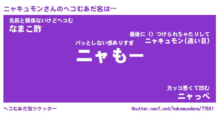 | 意味不明あだ名 | 『ペロリンニャキュモン』 |