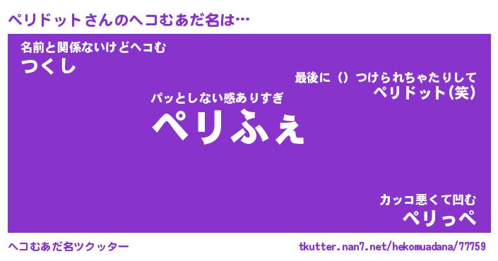 | ポケモン風あだ名 | 『ペリチュウ』『ペリドダネ』 |