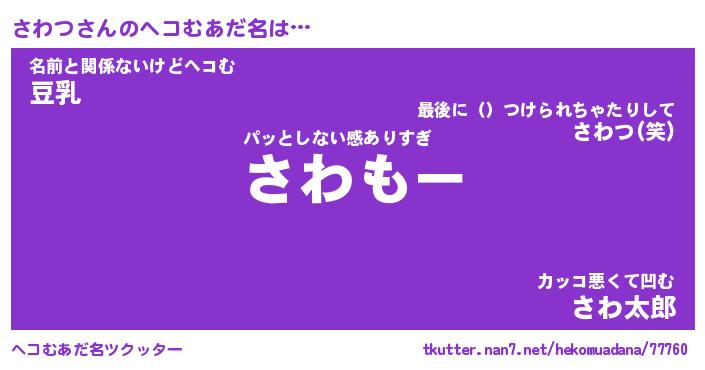 | ファンタジー風あだ名 | 『サワフェル』『エターナルサワツー』 |