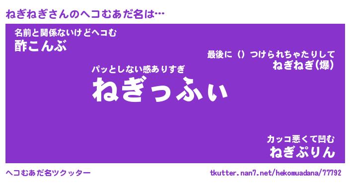| ファンタジー風あだ名 | 『ネギフェル』『エターナルネギネギー』 |
