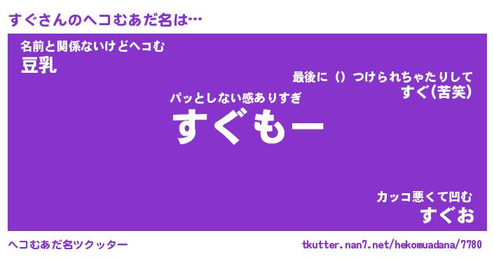 | ヒーロー風カッコイイあだ名 | 『スーパースグ』『ウルトラすぐマン』 |