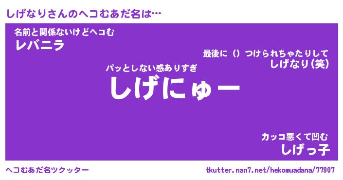| 意味不明あだ名 | 『ペロリンしげなり』『永久保存しげなり』 |