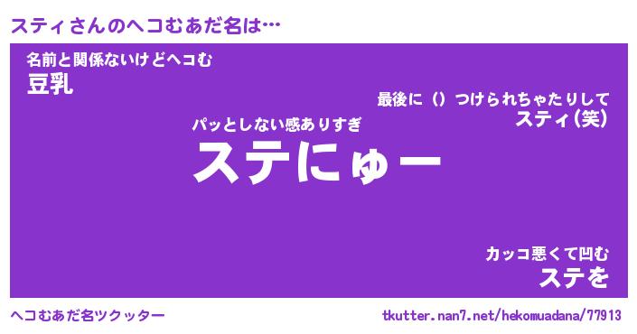 | ポケモン風あだ名 | 『ステチュウ』『スティダネ』 |
