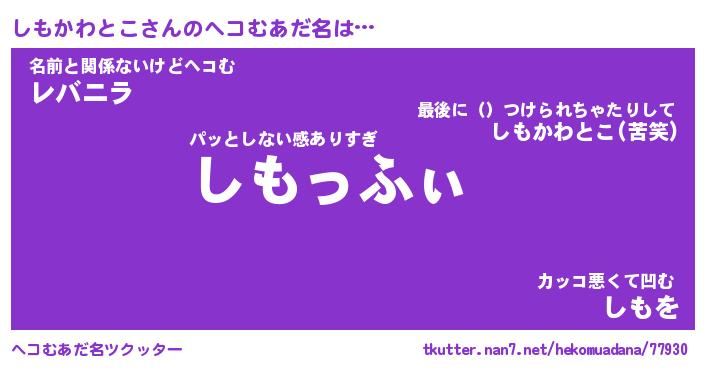 | 男性向けラノベタイトル風あだ名 | 『シモカワトコアートオンライン』 |