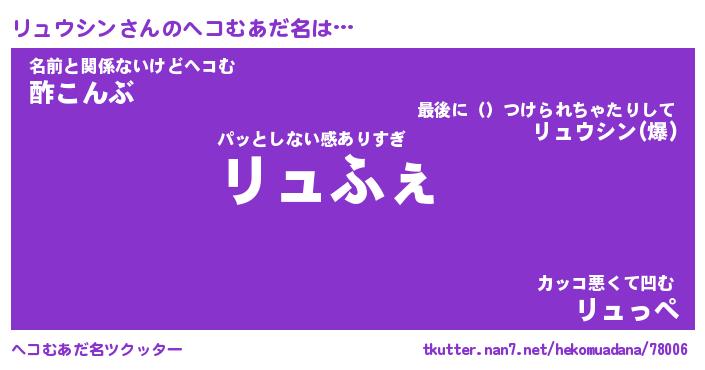 | 男性向けラノベタイトル風あだ名 | 『リュウシンの憂鬱』 |